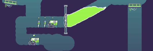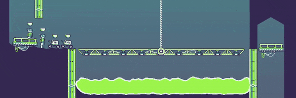 At each stage, the player must use the elements at his disposal, such as excavators, pumps, pipes, cannons, drones and dynamic platforms to reach the next elevator. There are few ways to get there, so the player must combine the direction of the path with the physics of the elements to succeed. Thus, each scenario is a big puzzle that must be solved to reach the end of the journey.