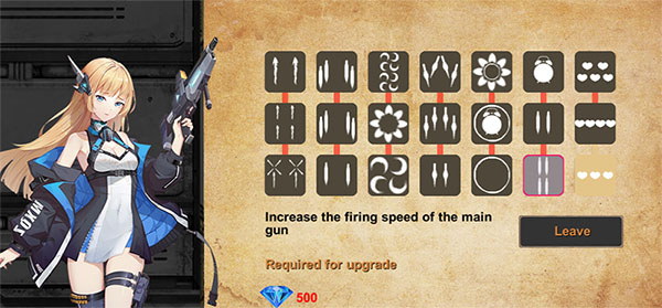 Игроки могут получить алмазы, уничтожив вражеские самолеты, а алмазы могут улучшить истребители главного героя на станции снабжения. Типы, которые можно улучшить, включают количество пуль, мощность пуль, лазеры, защитные щиты, крупномасштабное атакующее оружие и так далее.
