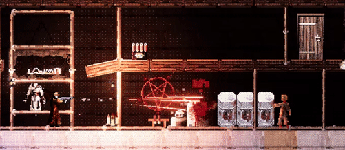 Кровь, оккультизм, зомби, распятые блудницы-прелюбодейницы-суккубы а так же ураганная стрельба с реалистичной физикой и расчетом кинетической энергии пуль и осколков, и все это в пиксель арте - это и есть Blood Of Darkness