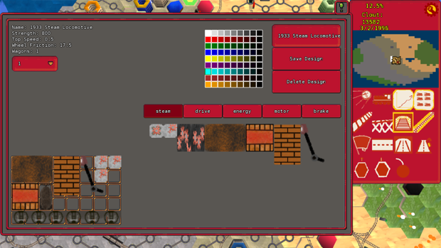 Red Trains is a strategic simulator game. Build tracks to connect industry and cities. Customize locomotive designs to optimize for particular goods and routes. Manage your political clout to avoid being removed from your post.