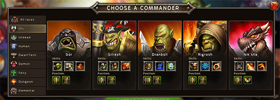 Выберите одного из командиров. Командиры непосредственно участвуют на поле боя, помогая своими ультимативными умениями. Каждый командир влияет на стоимость юнитов либо другие характеристики армии.