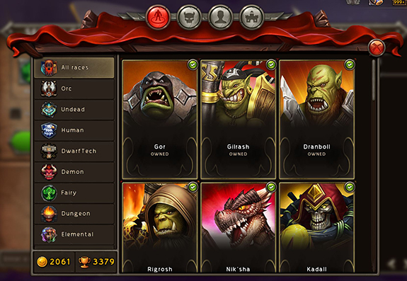 В начале боя выберите одну из сторон конфликта. Все стороны имеют свои особенности уникальных юнитов со своими сильными и слабыми сторонами.