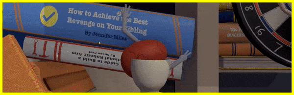 * Fling yourself to freedom across three danger-filled stages! (Kitchen, Attic, & The Backyard!)