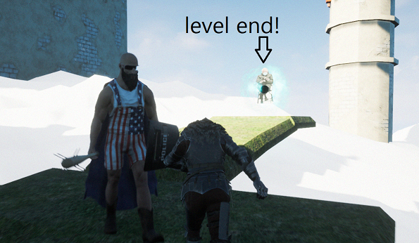 This is a multiplayer game where you race on foot against others to reach the level end! The level end is marked by a floating orb.