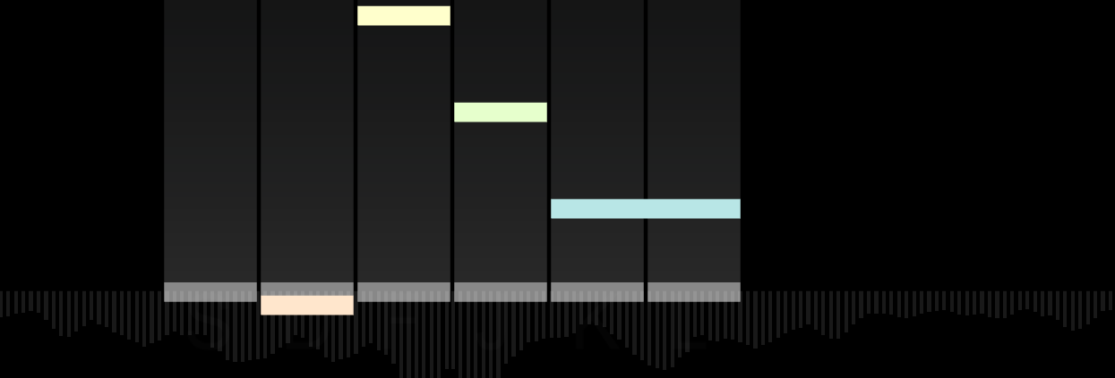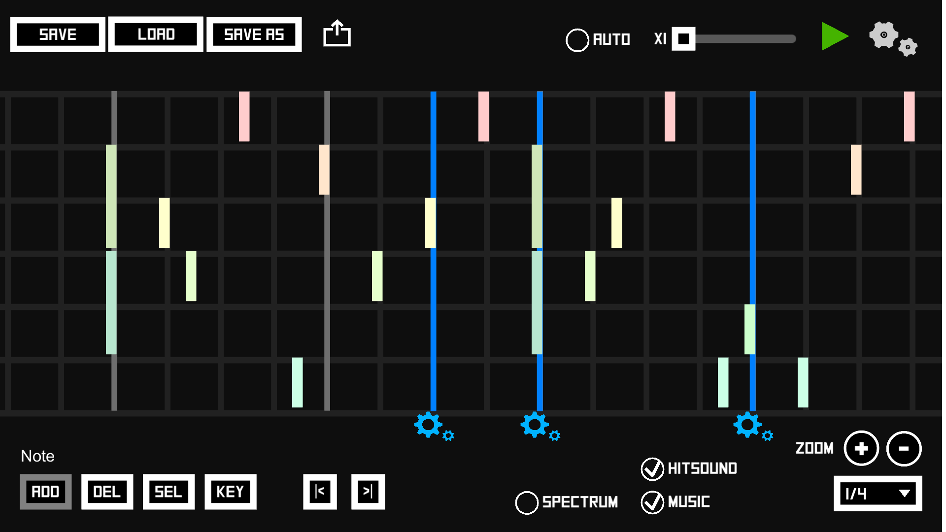 The note falls on the six lines, and you have to press the keyboard when the notes touch the bottom of the line!