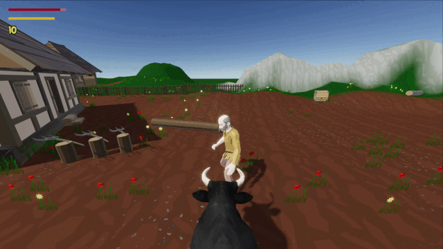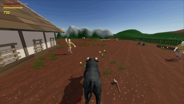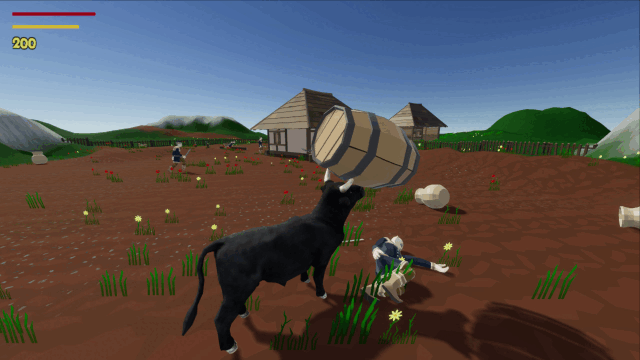 Have you ever wondered what it's like to be a four-legged pile of muscles with two sharp horns? Now you have a chance to run around and destroy anything that stands on your way. With the mouse, you have a full control over the bull's head movement. The game uses advanced active ragdoll physics - enemies are not just puppets, the animation only drives the physics engine, so you can interact with their movement.