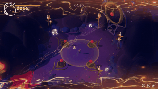 With every run the realm changes its layout, exposing new threats and possibilities to explore. While the creatures tend to stay close to the dwindling Timeflow, exploring further from its shores may reward you with precious temporary upgrades or secrets to uncover.