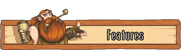 Wide variety of competitive mini-games to enjoy classic fantasy realms (Desert, Ice, Dungeon, Spooky, and Skyland), accompanied by tavern bonus games and Final Boss fights!