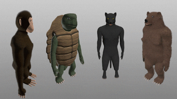 - Choose between Ape, Panther, Turtle and Bear.