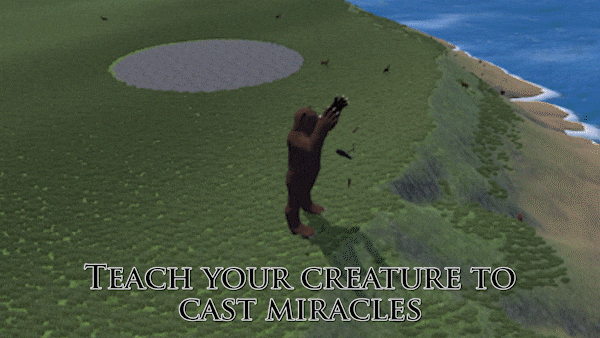 - Your creature starts out clueless, but they can learn! By watching your behavior and reinforcing their behavior with pets or punishment, your creature will learn how they should interact with the world. Train your creature to eat goblins, cast miracles, help your villagers, and more!