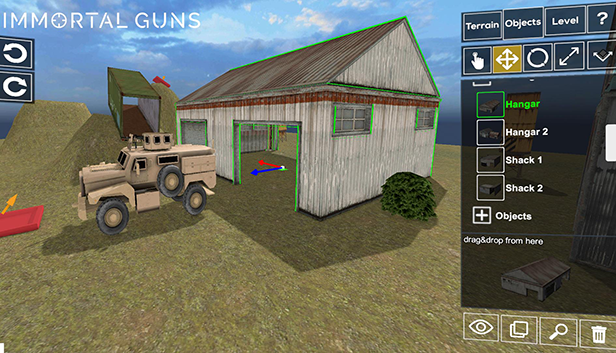 Immortal Guns is a new FPS game with a powerful level editor. The game offers multiple game modes, maps, and weapons that can be fully customized with an intuitive drag & drop interface. The level editor is a powerful, easy-to-use tool with a terrain and object editor that lets you build, share and play your levels with friends.