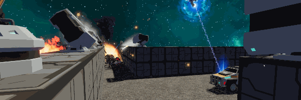 Buy new vehicles, turrets, and more. Visit space stations to unlock upgrades.