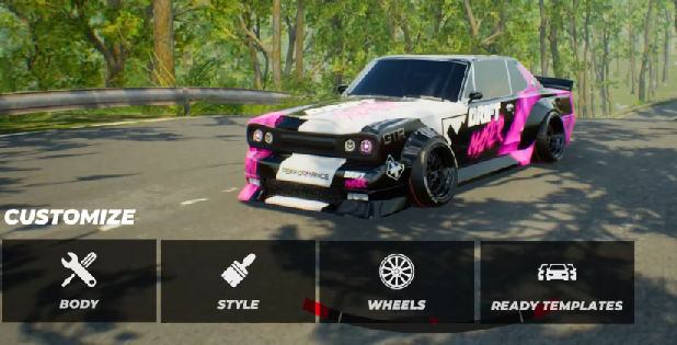 Fully customize your car. Change tires, different body parts, paint or select a prebuild setup!
