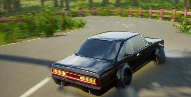 The car has an arcade drift handling and can be controlled by keyboard or gamepad.
