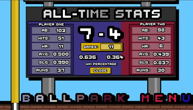 - In-Game, In-Session, and All-Time stats are saved! Because if there's one thing we baseball fans love, it's STATS.