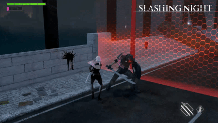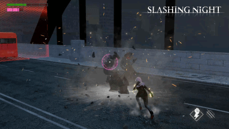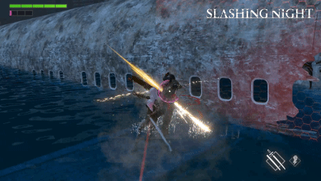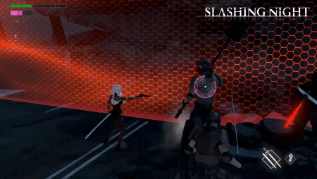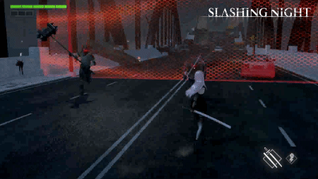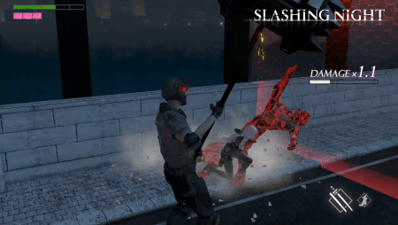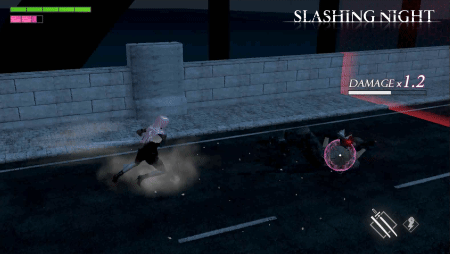 "SLASHING NIGHT" is a high-speed action game where you can quickly switch weapons and perform aerial or ground combos.