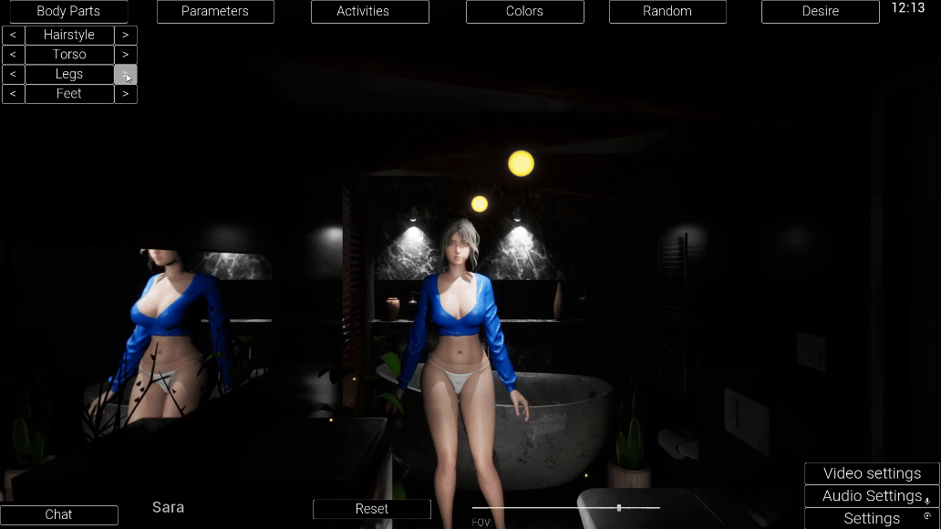 The game has several rooms where we can spend time together. You can use a flexible camera system with adjustable zoom.