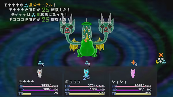 バトルのカギとなるのは、「太陽」「星」「月」の三属性です。