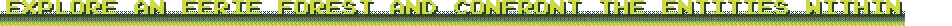 Mysteerie is a spooky, turn-based, Match-3 RPG where you become the eyes of a small RC vehicle exploring a haunted forest. Armed with a camera, you'll navigate eerie environments and interact with strange creatures - all through the RC vehicle camera lens.