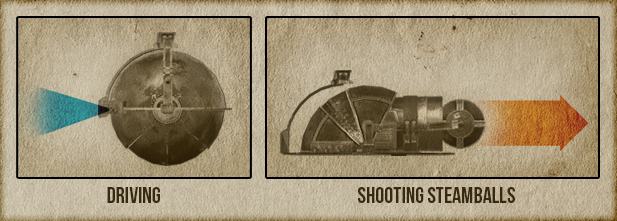 These small spheric devices can be shot in several angles and intensity. You'll have to be careful using them, you'll have a limited amount of resources in each deployment base. Steamballs can be filled with latest technology inventions, which will deploy after the steamball is shot.