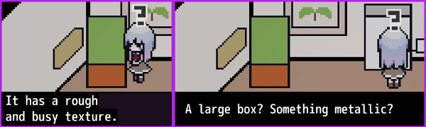 However, it is a little different from ordinary escape games; the girl doesn't have enough "awareness" in the beginning, and she can only recognize a "fridge" as "a large metallic box" or "tree" as something with "rough and busy texture".