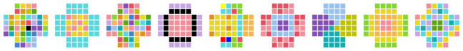The most basic tier of particles currently are represented with numbered pieces. The Arabic numerals are a widely recognized sequence, used here to help predict a new particle. Combining similar numbered particles creates the particle with the next highest number, up until 15 (which begins the next tier of 3 more basic particles). A second way to combine the numbered particles is to add particles that have a compatible color hue. But for those who think better with numbers, and for accessibility reasons, these color-compatible pairs also add to 15. The pairs of numbers that add to 15 represent the only math that could be necessary or useful in this game.