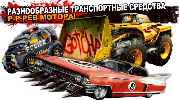 Тачка — просто улет! В Carmageddon: Max Damage вас ждет невероятное многообразие крутых, офигенных, ни на что не похожих убийственных тачек, каждая из которых может похвастаться собственным, очень ярким характером. Машины Carmageddon просто созданы для расплющивания противников и сбивания пешеходов! Почти 20 лет назад разработчики первой игры из серии Carmageddon продумали новые принципы игровой физики и отображения повреждений машин и элементов окружения в реальном времени. Мы взяли на себя ответственность привести эти технологии в соответствие с требованиями нашего времени и создали совершенно новую систему художественного отображения повреждений (и ремонта) машин. Врезайтесь, давите, корежьте и попросту расплющивайте машины своих противников — да и свои собственные. Отбивайте от них детали, рассекайте их надвое; игра изначально была посвящена уничтожению автомобилей и наездам на пешеходов, и сейчас мы вывели всё это на новый уровень! Вы сможете оснастить свою машину улучшениями, повышающими показатели мощности ее двигателя, брони и атаки. Вам будут доступны и другие настройки, что позволит вам разработать собственный почерк по части убийственных наездов.