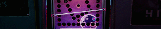 Super Korotama is an arcade skill game that emulates a classic retro-style arcade machine with different perforated panels, where the user can move a metal ball through a vertical bar that can be raised with the machine's joysticks. The main objective of the game is to put the ball in the correct hole while avoiding the rest of the holes.