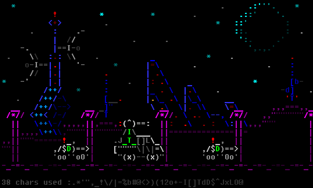 Абсолютно вся графика в игре выполнена с помощью символов, которые набираются на клавиатуре. Если быть более точным, то используются символы из таблицы ASCII с 32-го по 126-ой символ.Тексты в игре локализованы на несколько языков и могут содержать символы не из аутентичного диапазона. Однако эти символы не участвуют в дизайне. Графика - только ASCII.