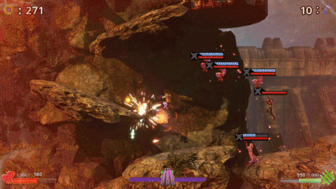 - Experience fast paced action in a side scroller with first person shooter style controls.