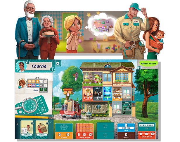 Starting from the home plan of your future buyers, draw your cards and put them down to submit your project. Build and decorate each room, paint the roof, expand the garage... add a piano to the living room or an ice maker to the kitchen — let your imagination go wild!