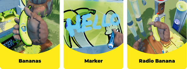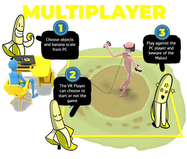 - Every Banana became banana Juice that can be used to attack the opponent. If the VR Player throw a special banana into the tube will be able to block the PC player