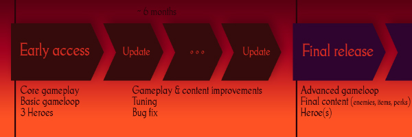 We intend to have the game complete with 6 month or so of full development. It will focus on improving core gameplay, add a real advanced gameloop and add content required to make this gameloop work.