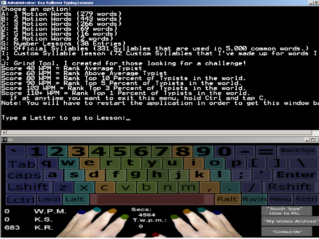 This is part of the onboard lessons that comes with the onscreen keyboard. I believe that everyone has the ability to type 90+ WPM, if they are trained using the correct method of Typing. Most Typing Instructors Neglect "Key Rollovers", and don't even mention them to their students.