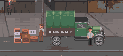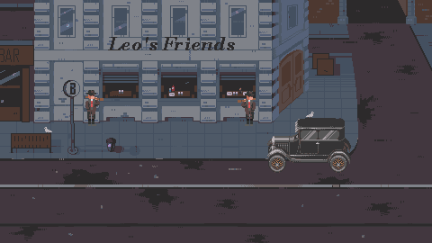 Детально проработанные локации в PixelArt.Приятная атмосфера 1920х годов.