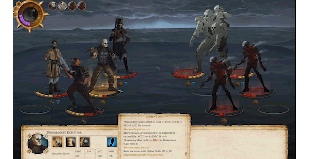 Engage in turn-based, tactical combat that involves your companions and a large variety of enemies, both humanoid and monstrous. Use a wide range of character skills as well as your own leadership-related abilities to succeed. Positioning and support skills are of paramount importance in these challenging engagements.