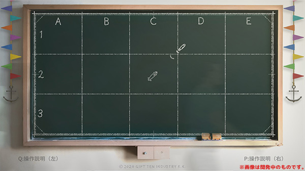 Players are divided into two roles: A "Sonar player" who uses sound to search for enemies and obstacles, and a "Pilot player" who steers the submarine and fires/detonates torpedoes.Work together to clear the stage.