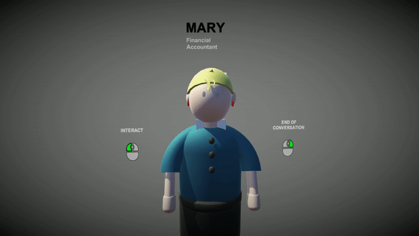 Once you're incorporated to the company, you'll have access to your desktop and your professional computer. On that PC, you'll be able to play some mini-games (classify files, fix bugs, calculus...). All these activities will make you earn happiness points.