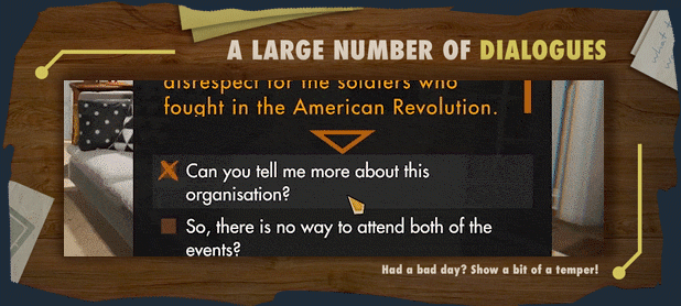 Follow the narrative and react to events. Talk to your advisors, receive visitors and make decisions. There are no wrong answers... unless there are? Check for yourself and repeat the game if you fail – new dialogues await your discovery, so don’t worry about repetitiveness. After all, America was not build in one day.