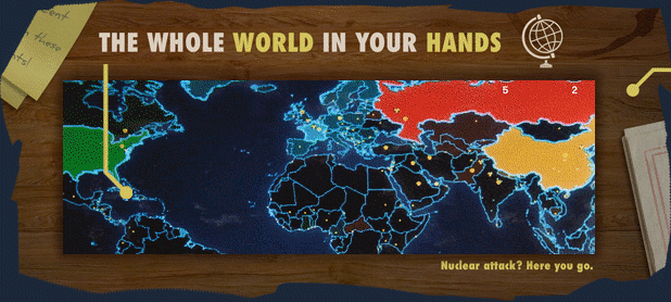 You are the Commander in Chief of the army and it is entirely up to you if you want to interfere, or abstain from violence. Remember – whether you send a group of soldiers on a sabotage mission or start a regular war – people will be watching your actions closely. Journalists, other politicians and leaders, justices, even common voters, they will all react to the situation. When an event occures, you can move troops, send nukes, declare a truce or try to maintain status quo – all of these action can be performed right from your office. What will you choose – peace or war? Make no mistake, the fate of the world rests on your shoulders.