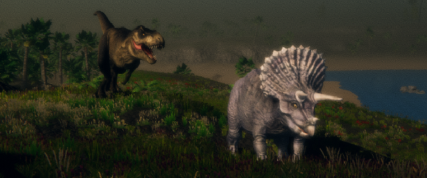 Many very different dinosaur species live on the island. Some are calmer herbivores and others more aggressive carnivores. Some species also like to live in herds making finding more of them easier. Carnivores may end up eating some of the herbivores. All of the dinosaurs can be a danger to the hunter. Beware of their keen senses!