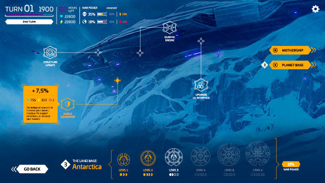 Evolve your mothership and get access to new resources and instruments to raise your war power. Choose from 3 evolution pillars in each decision: Science, Military, or Infrastructure.