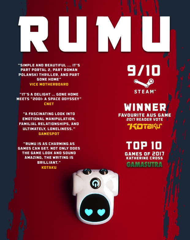 Rumu is our debut feature length title, and we're thrilled to bring it to likeminded players who have a thirst for intimate, narrative-driven experiences.