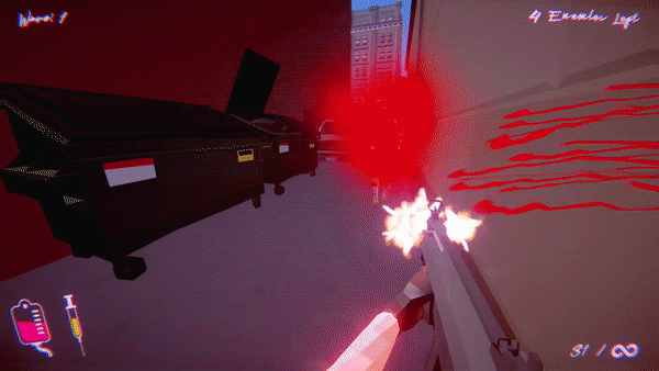 Blood Metal includes a highly detailed gore system. Every part of the human body is destructible. This includes organs, bones, and muscles. A single bullet can rip off limbs, spill out guts, or tear an entire body in half. Additional mechanics that simulate damage in even more complex ways are planned for future versions of the game.