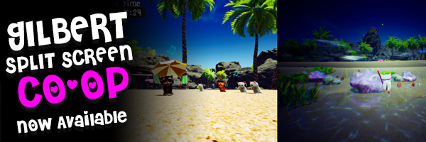 Parents, siblings and friends can now join in the fun with local multiplayer split screen (Beta). All new levels are planned to take full advantage of this new feature. However, all the existing maps are now fully working for two player co-op. https://steamcommunity.com/games/playwithgilbert/announcements/detail/1664523229407251108