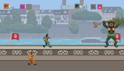 Heroes Harold and Benny take a break from playing with their ska band to rid the world of the merciless Nugnur and its horde of evil skeletons in this retro-styled run n' gun game full of color, energetic music, and fast-paced action!