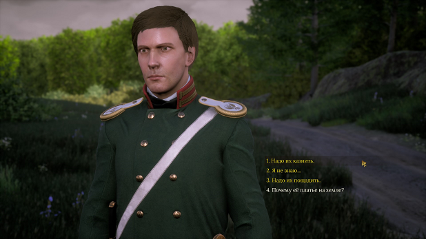 На пути вам предстоит столкнуться со множеством персонажей. У каждого – свои мысли, мотивы, скрытые цели. Мир не чёрно-белый, в нём нет героев и злодеев. Вы повстречаете бравых офицеров, благородных дам, продажных чиновников, горячих бунтарей, садистских психопатов, и ещё бог знает кого. Игра полностью озвучена, все персонажи отыграны профессиональными актёрами.