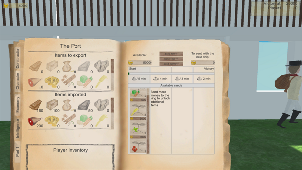 Traders offer seeds for nutritional and luxury crops at your port. The seeds are randomised in each game and you have to adapt to what is available. The market is also limited in quantity, so any seed you buy is unavailable for your competitor and vice versa. Choose carefully whether you invest in a crop early on, or whether it is better for you to go with cheaper, less profitable industries to begin with. Additional crops will become available to you when you have submitted a quarter, half, and three-quarter of the required coin to your Queen, so time your submissions to reap the most rewards.