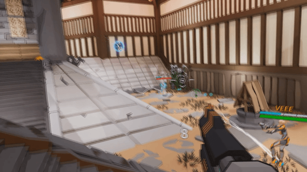 Run, jump and double jump to get yourself into position, wall jump to evade incoming harm, pull yourself up with the grappling hook to get the high ground or grapple-swing around corners to surprise your enemies. Learn how to chain these abilities with your 3D maneuvering gear to perform untraceable movement combos and outsmart your enemies like never before in a VR game! Maps are specifically designed with vertically in mind to get the most out of it.
