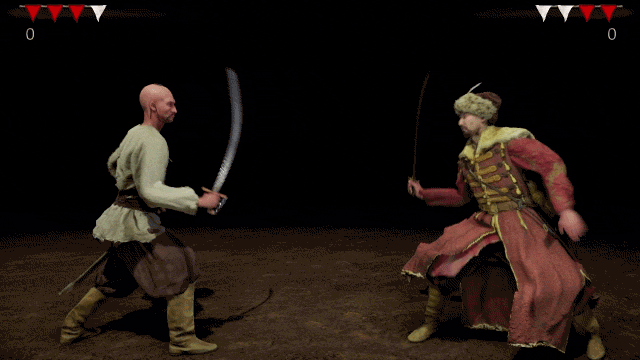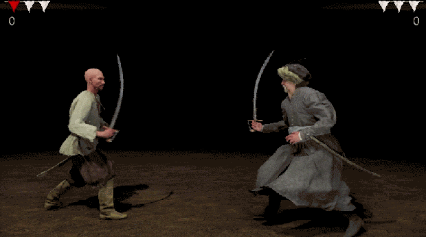 Hellish Quart uses active ragdolls and all damage your blade can do is calculated with realtime physics. Four gamepad buttons represent 4 attack angles. Different button combinations give special attacks and combos. If you are not attacking, your character will automatically try to hold guard against your opponent's attacks. The blades really block each other and that's what's keeping you alive. To win, you must use proper timing, measure, technique, speed and wits - just like when fencing in the real world.